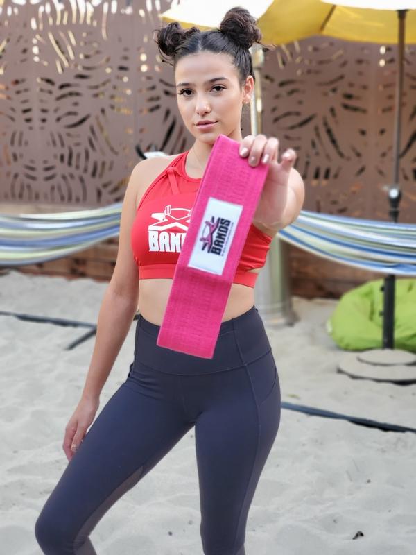 Set of 4 fabric non-slip and non-rolling resistance bands in a limited edition pink color and in black. Workout Guide Book with 25 different exercises and 30 workouts that can be done multiple times.